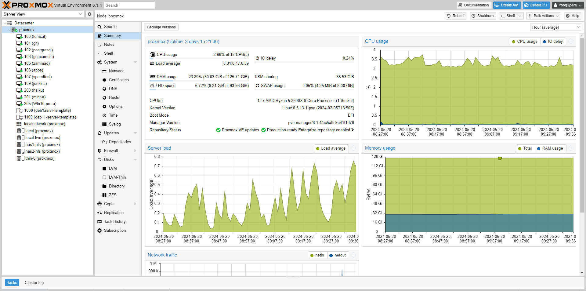 Our favorite virtual environment, Proxmox runs most of the interesting stuff in the house. I prefer Virtual Machines to containerized applications. It is heaver weight, but with a bit of image and memory management, any disadvantages are easily minimized.